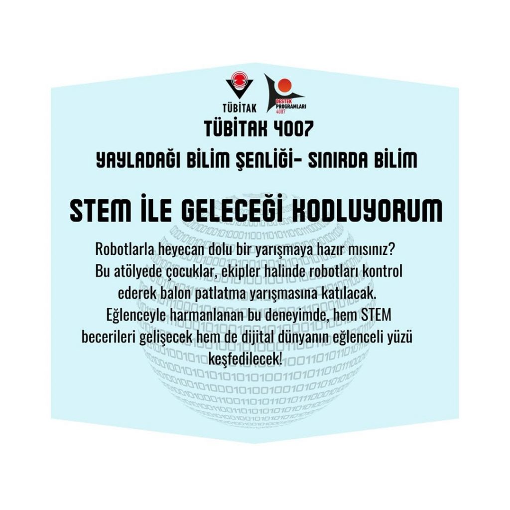 STEM Robotik Kodlama Eğitim Eğitmeni Uğur Özden DOĞRU‘nun duyurusuyla, TÜBİTAK 4007 – Yayladağı Bilim Şenliği “Sınırda Bilim” projesi, 2-3-4 Ekim 2025 tarihlerinde Hatay’ın Yayladağı ilçesinde gerçekleştirilecek. 10. Çağrı kapsamında desteklenmeye hak kazanan 89 projeden biri olan bu şenlik, bilim ve eğitimin ışığını bölgeden tüm Türkiye’ye taşıyacak.