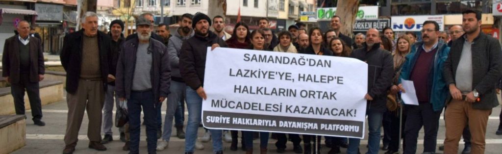Suriye’de derinleşen çatışmalı süreç ve sivillere yönelik hak ihlalleri, Hatay’ın Samandağ ilçesinde protesto edildi. Suriye Halklarıyla Dayanışma Platformu tarafından düzenlenen eylemde, “Samandağ’dan Lazkiye’ye, Halep’e Halkların Ortak Mücadelesi Kazanacak” şiarıyla ortak yaşam ve barış vurgusu yapıldı.